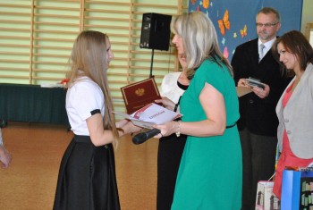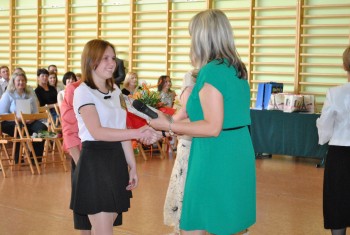 Świadectwa z wyróżnieniem odebrali z rąk pani dyrektor i wychowawców ci, którzy uzyskali średnie 4,75 i wyżej – 21 osób. Specjalne podziękowania i listy gratulacyjne pani dyrektor wręczyła również ich Rodzicom.
